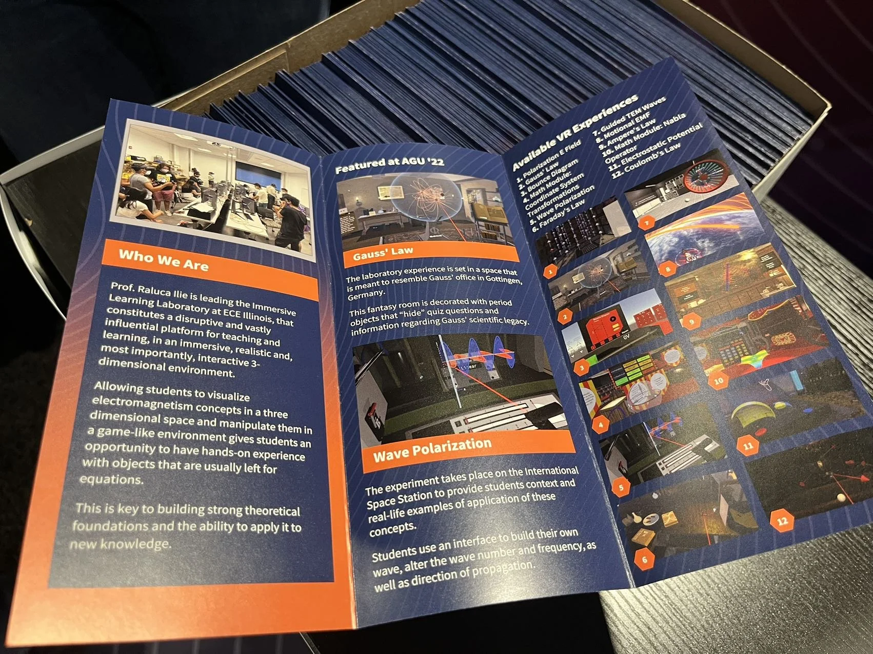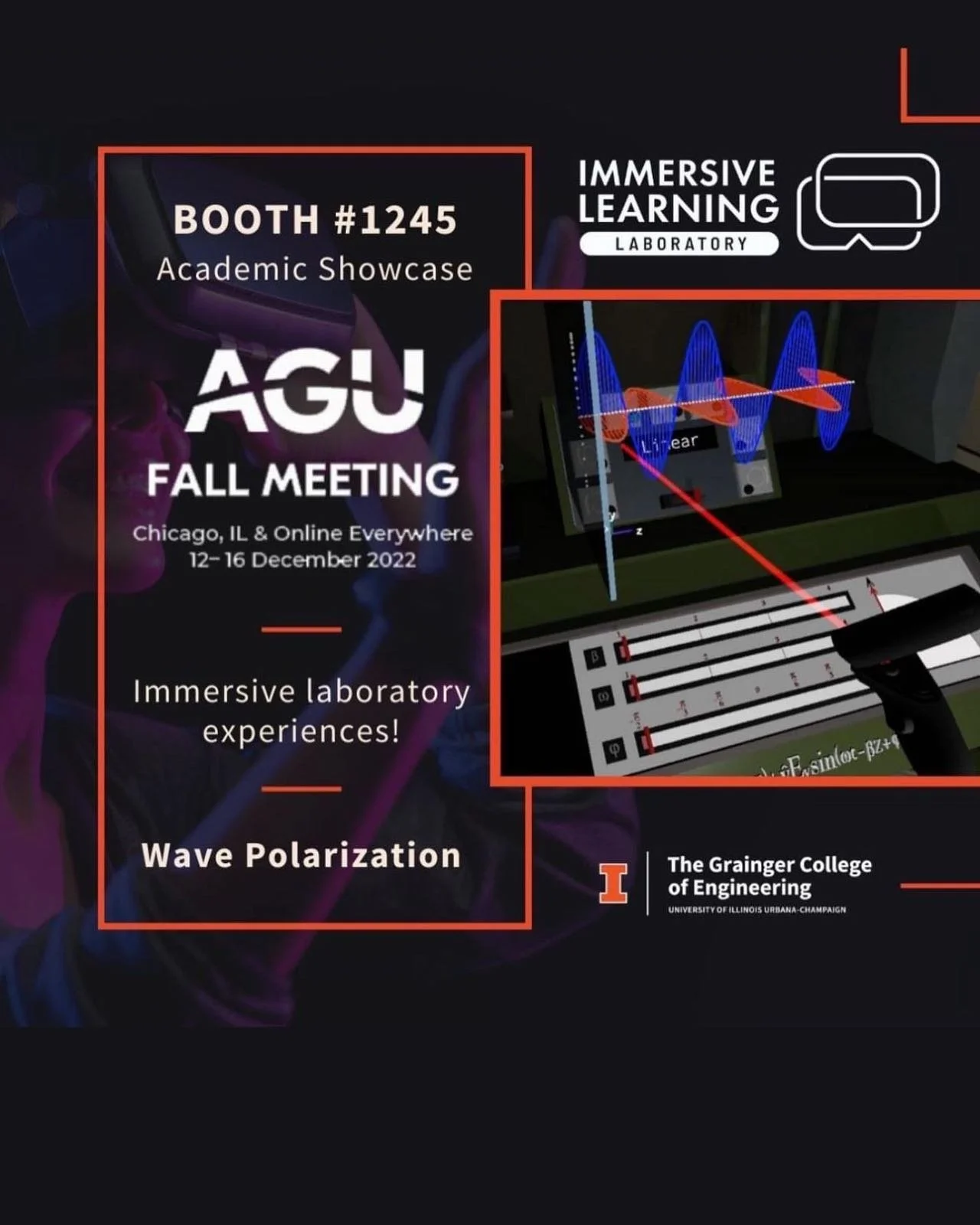 In Winter 2022, we presented our Wave Polarization and Gauss' Law labs at the American Geophysical Union (AGU) 2022 conference, where we received positive feedback from professors and students who attended.